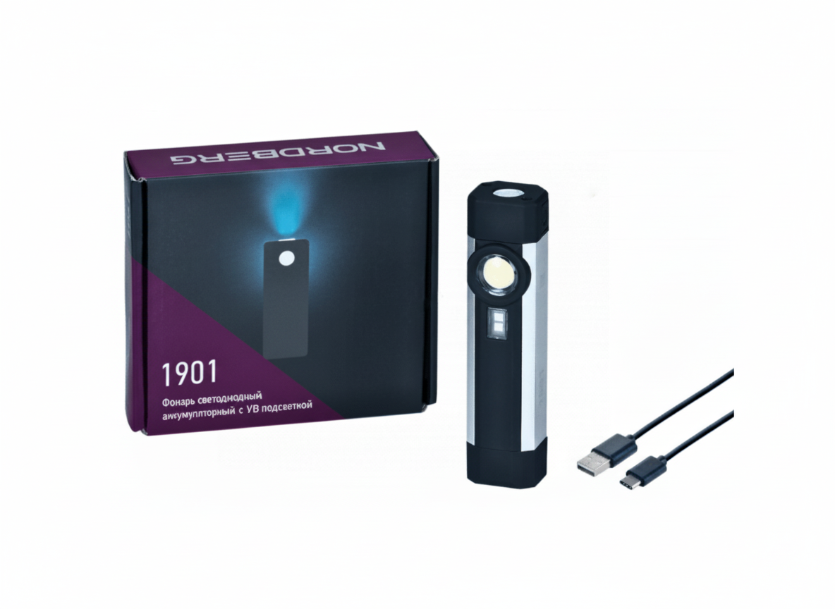 The NORDBERG 1901 LED flashlight is a professional lighting device for use in car repair shops and service stations.